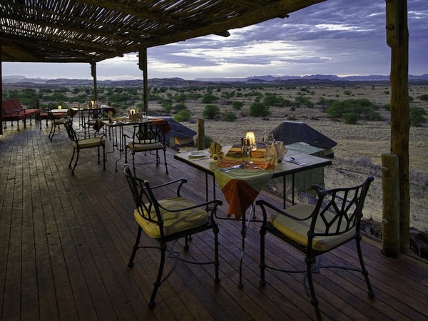 Doro Nawas Camp is situated in the ruggedly beautiful Damaraland area, resting atop a rocky knoll within the floodplain of the Aba-Huab River Valley in northwest Namibia. This is prime habitat for desert-adapted elephants. The unique lodge design allows for an uninterrupted panorama of this diverse and dramatic landscape, with imposing plateaus, canyons, dry riverbeds, and open savanna. Dark, clear nights offer superb stargazing from camp.