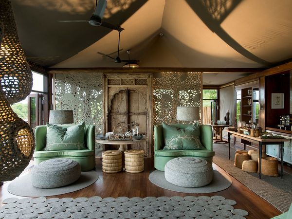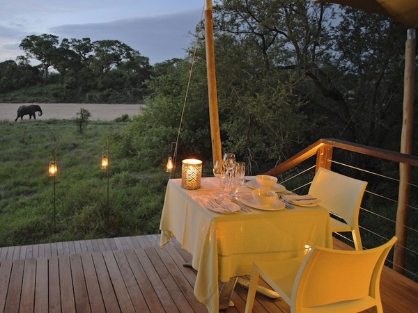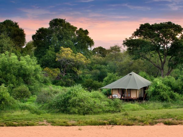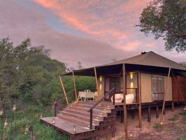 Ngala Tented Camp features just nine canvas tents within its own private game reserve that flows into Kruger National Park. Each of the luxurious tented suites sits on a raised wooden platform along a seasonal riverbed where you may witness elephant or impala traipsing along while you enjoy your morning cup of tea on your private veranda. The tents each feature air conditioning and en suite bathrooms with free-standing bathtubs and private outdoor showers. Wooden floors and furniture and fine linens provide you comfort in an otherwise wild land. The main areas of camp are spacious, but intimate, all overlooking the seasonal river. It's always possible to spot animals right from camp. Parafin lanterns at dusk and twilight create a sense of romance and elegance. Meals can be enjoyed in the main open-air dining area or on your own private deck. A swimming pool is ideal for a dip between activities.