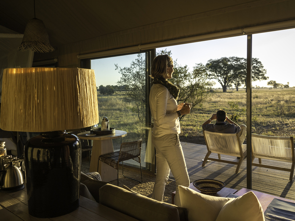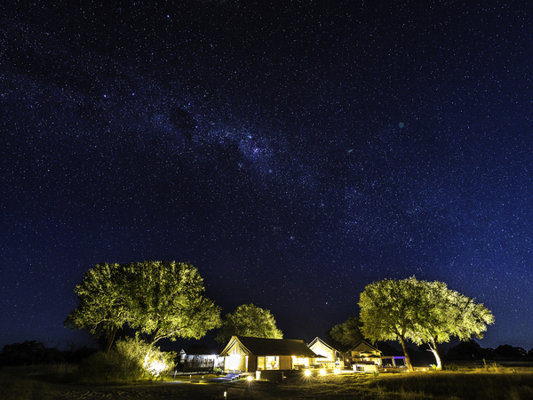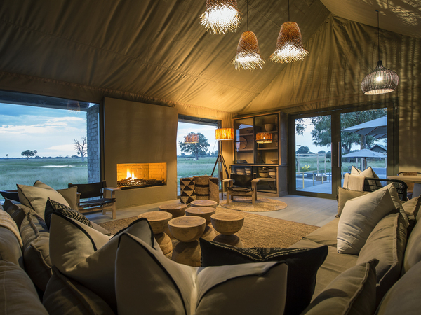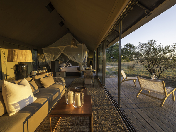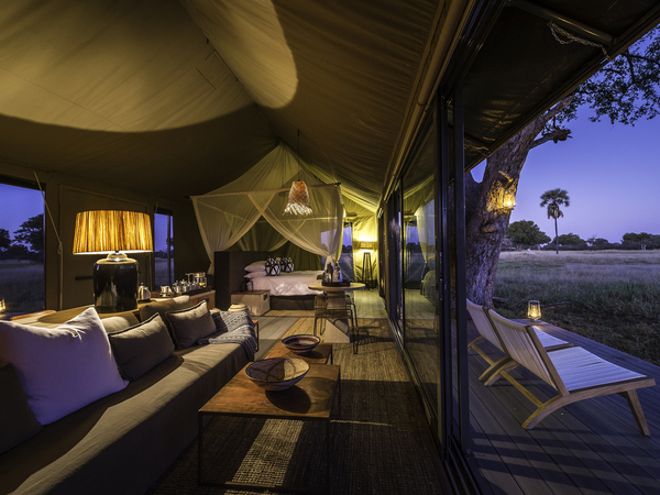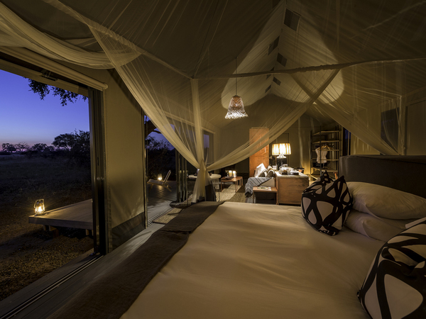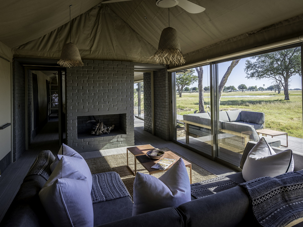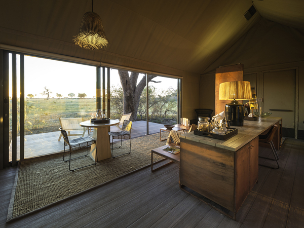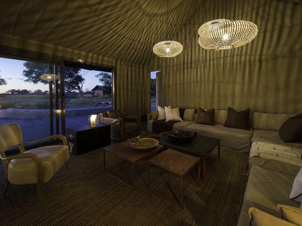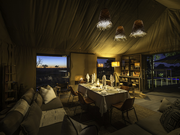 Linkwasha Camp is situated in the southeast corner of Hwange National Park on the private Linkwasha Concession, an area encompassing nearly 130,000 acres of exclusive-access land. Nine canvas-and-glass tents include one family tent, and each has an en suite bathroom with screened windows and doors for the summer months, and glass for the colder winter nights. A waterhole in front of camp draws animals for frequent drinking in this often-arid region. The main lodge comprises a multi-level deck with sweeping views, along with a swimming pool, dining area, library, winter lounge and cozy fireplace.