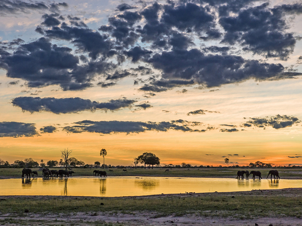 Guests in the Linkwasha Concession can enjoy early morning and late afternoon wildlife drives that last after dusk, when you search for nocturnal creatures and hunting predators. Walks and village visits are also possible. Staggering herds of Cape buffalo and African savanna elephant roam free, numbering in the thousands. Some 30,000 elephant inhabit Hwange, with herd sizes peaking in the dry season when animals gather around a few waning water sources. More than 100 mammal species are at home in Hwange National Park, including lion, leopard, cheetah, spotted hyena, brown hyena, wild dog, various mongooses, jackals, hares, primates and the elusive porcupine, caracal, aardwolf and African wildcat. White rhino have been reintroduced with hopes of growing a natural population—there are currently too few to see in the wild with any likelihood. Plains game includes eland, roan, sable, giraffe, zebra and wildebeest, among many others.