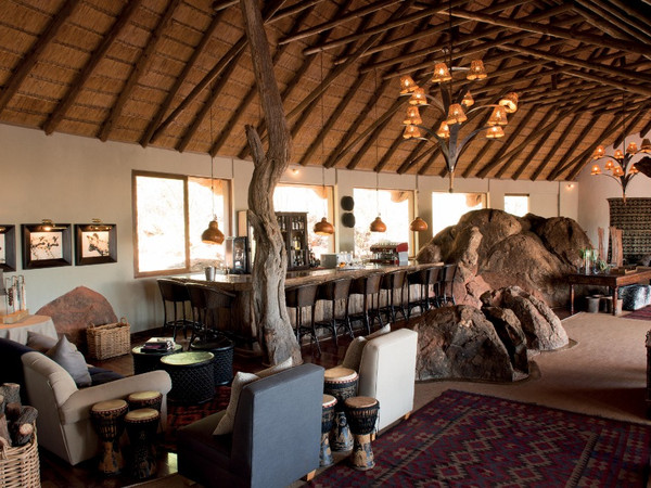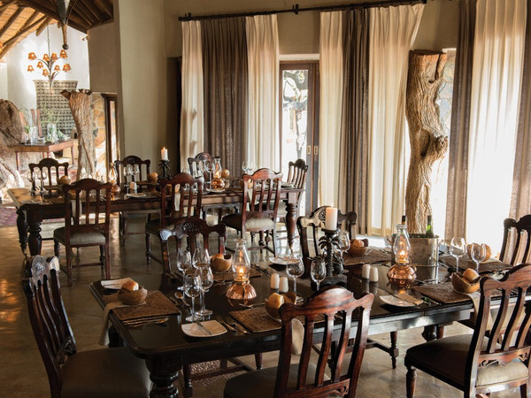 Madikwe Hills is a long-established camp in the private Madikwe Game Reserve. The 10 elegant suites boast luxurious living areas with slate fireplaces leading into bedrooms with locally-carved, four-poster beds doused in soft pillows, fine linens and romantic mosquito netting. With glass doors opening the width of the bedroom, lying in and viewing towers of giraffe stroll by is an inevitability to anticipate. Spacious en suite bathrooms with deep tubs and private indoor and outdoor showers have views of the savanna just beyond the deck. Each private wooden veranda is treated with a private plunge pool for mid-day, cooling dips. A gorgeously appointed central lounge, with fireplace, curio shop, library, wine cellar and bar, opens onto a central deck and main pool. The dining area’s three mahogany tables host sumptuous, plated meals, accommodating dietary particulars. The essential ‘boma’ is also used often for al fresco meals around a bonfire, often replete with local song and dance.
