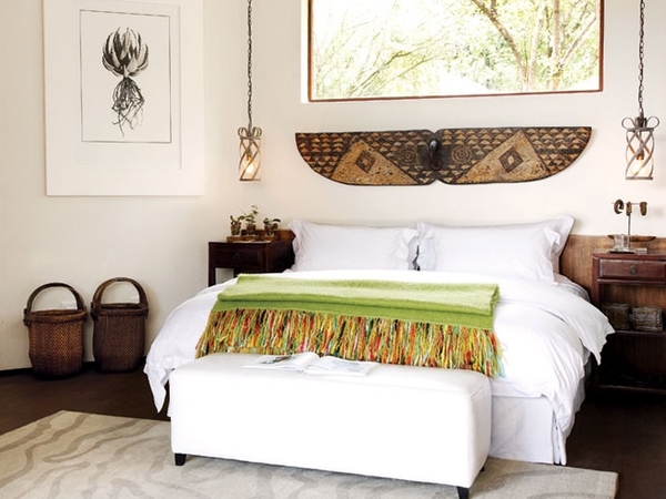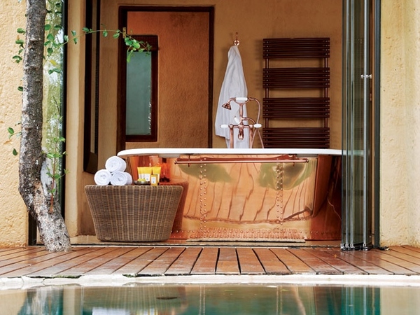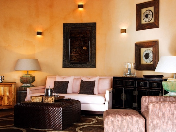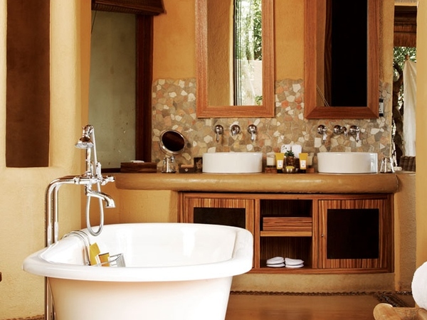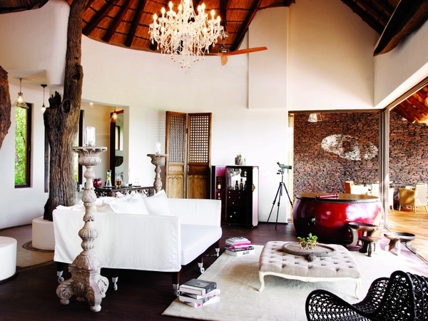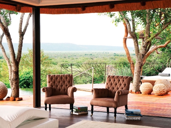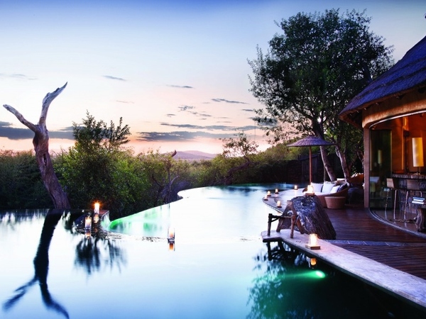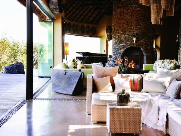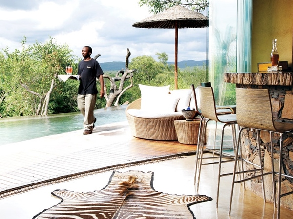 Molori Safari Lodge features five distinctive suites, each with climate-control options of air conditioning, fireplace heating or open-air temperatures via floor-to-ceiling retractable glass walls that open onto a private deck and swimming pool. A spotting scope allows you to view wildlife from the luxury of your own veranda in between activities, so you never miss a thing. Each suite has an en suite bathroom with a free-standing soaking tub, separate indoor shower and refreshing outdoor shower. Accommodations include five uniquely decorated suites including two premier suites (Ngwedi and Lesedi), one premier family suite (Sephiri) and two presidential suites (Metsi and Molelo). The style is modern, chic and eclectic with a mix of light, airy fabrics and colors, local African artworks and artifacts, modern and antique furnishings, stone, glass, wood, water and thatch. The main lodge comprises four dining areas, a library, a large living room and bar, and an outdoor deck featuring a hot spa bath and twin infinity pools. A rim-flow chilled spa bath is also situated on the highest mountainside deck for optimal wildlife viewing.
