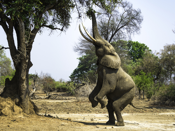 This area of Mana Pools is renowned for large numbers of elephant, buffalo, hippo and eland, especially in the dry winter when they congregate along the river. Predators such as lion, leopard, cheetah and wild dog are all found in the area. Greater kudu, Burchell's zebra, impala, warthog and waterbuck frequent the surrounding plains. Birdwatchers will delight in the superb diversity of birdlife, particularly mopane woodland and riverine species with numerous local specials like collared palm-thrush, racket-tailed roller, purple-banded sunbird and black-throated wattle-eyes. Though most wildlife viewing is done in 4x4 vehicles on day and evening game drives, you will hear the grunting of hippos constantly and see them on the sandy banks of the river. Elephants love the nutritious pods of the albida trees around camp and will often wander through for a snack. Canoe and pontoon boat excursions and guided walking safaris also get you close to the wildlife that dominates the landscape at Ruckomechi Camp.